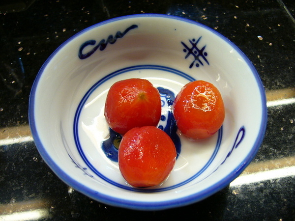 俐落的切上了一絲一絲的花紋,切塊之後撒上些許鹽,